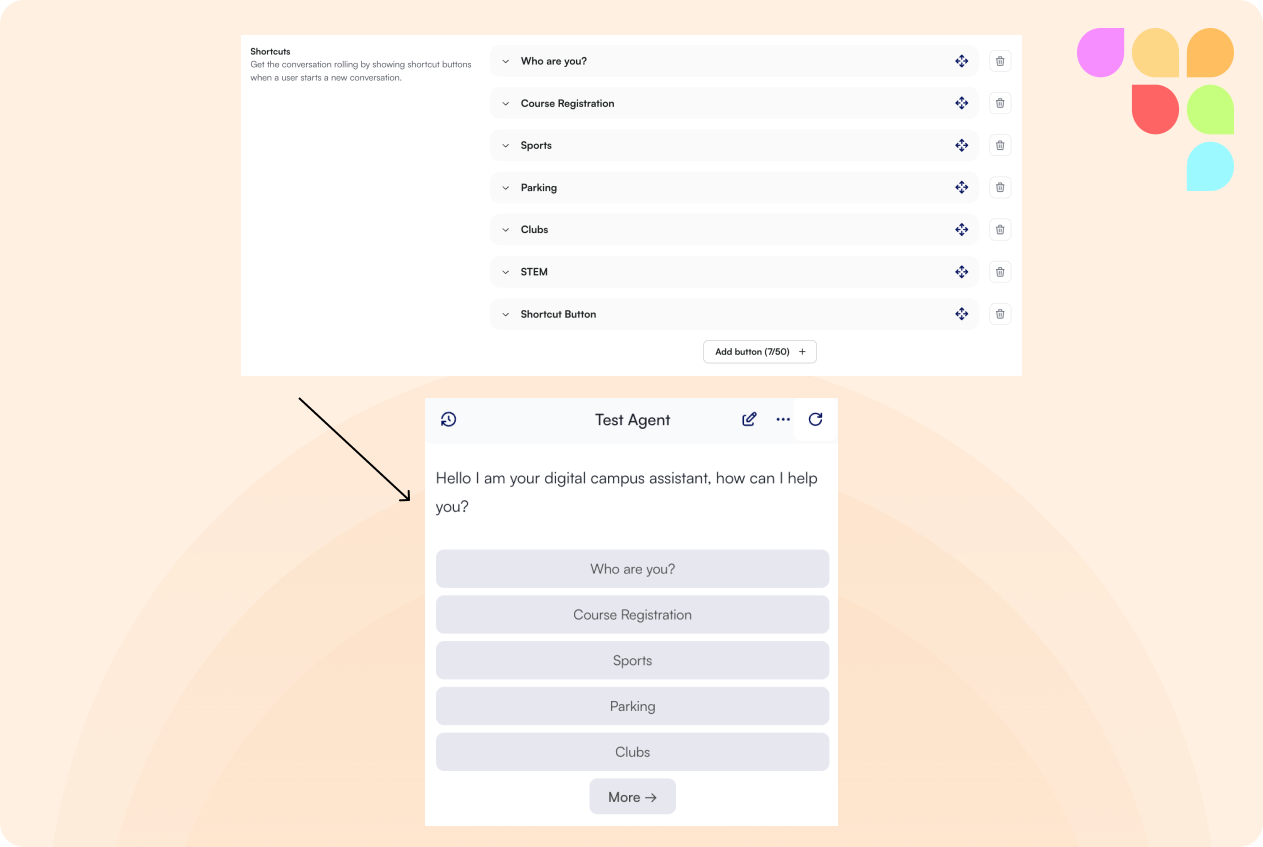 The limit on shortcut buttons has been increased to 50. When more than five buttons are configured, they are grouped under a "More" option in the chat interface to keep things clean.