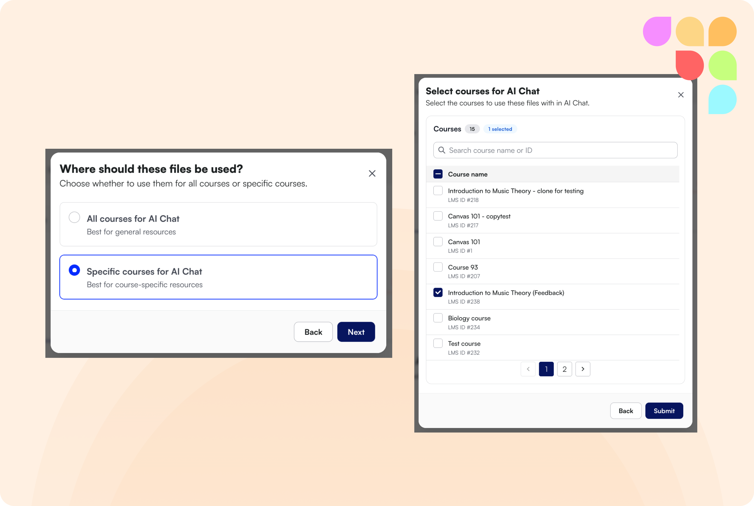 Users can now change their course selection mid-conversation when using cross-course chat, providing more flexibility without needing to start a new conversation.