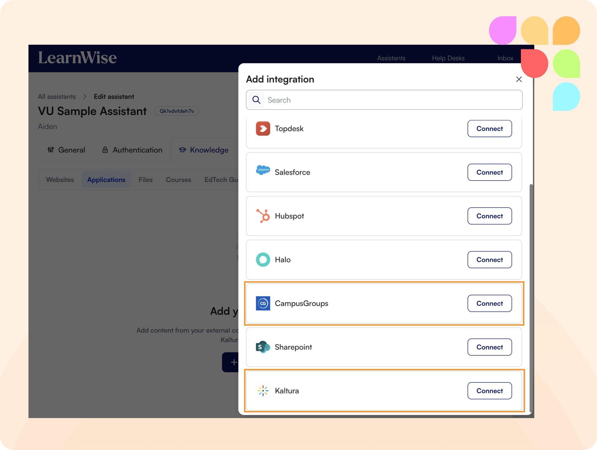 LearnWise now integrates with Campus Group content and Kaltura video transcripts as knowledge sources. These are simple to connect, giving students seamless access to a broader range of institutional information directly through their AI assistant.