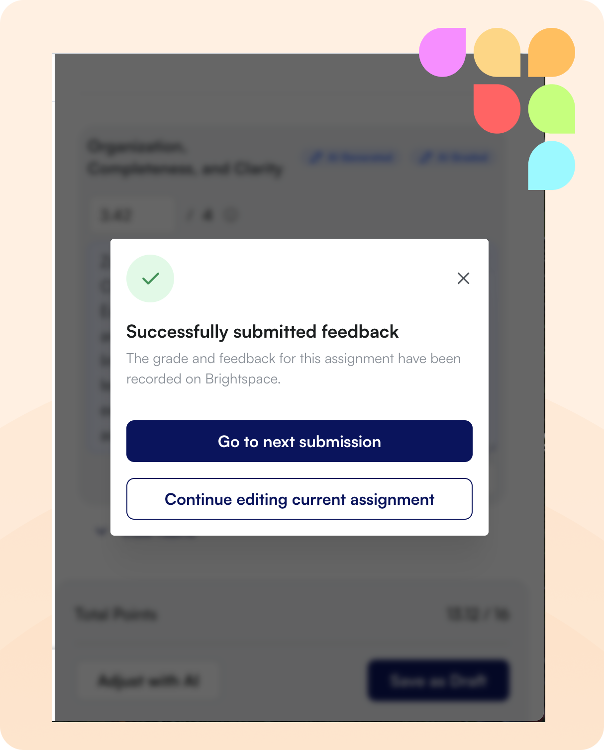 After generating and submitting feedback in the AI Feedback tool, you'll now see a clear confirmation that your feedback was submitted successfully, eliminating confusion about whether the action completed.