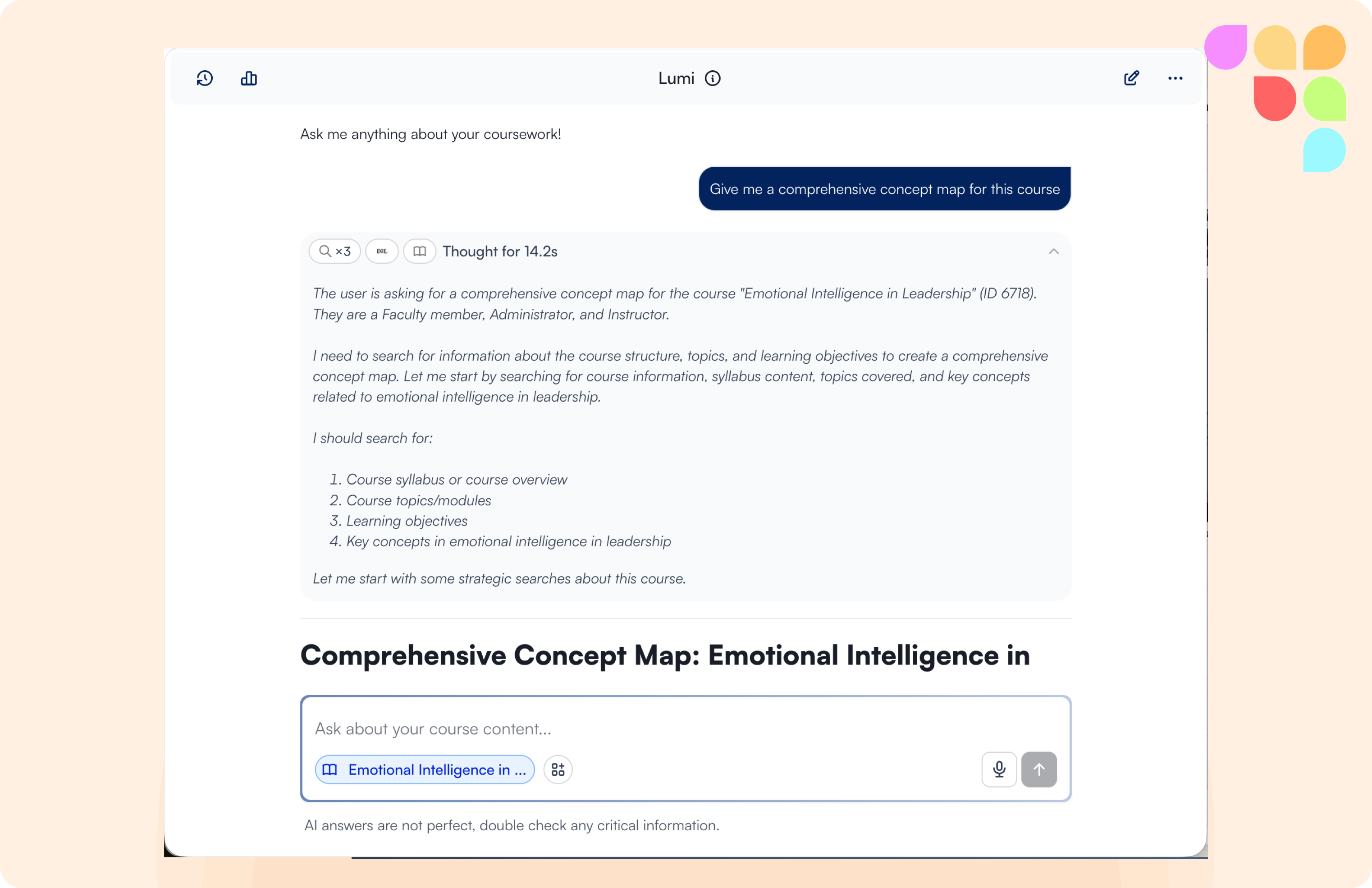 LearnWise now reasons through questions before responding. Rather than retrieving the closest-matching answer, the assistant breaks down each query, evaluates context, runs multiple search passes, and builds a response step by step.