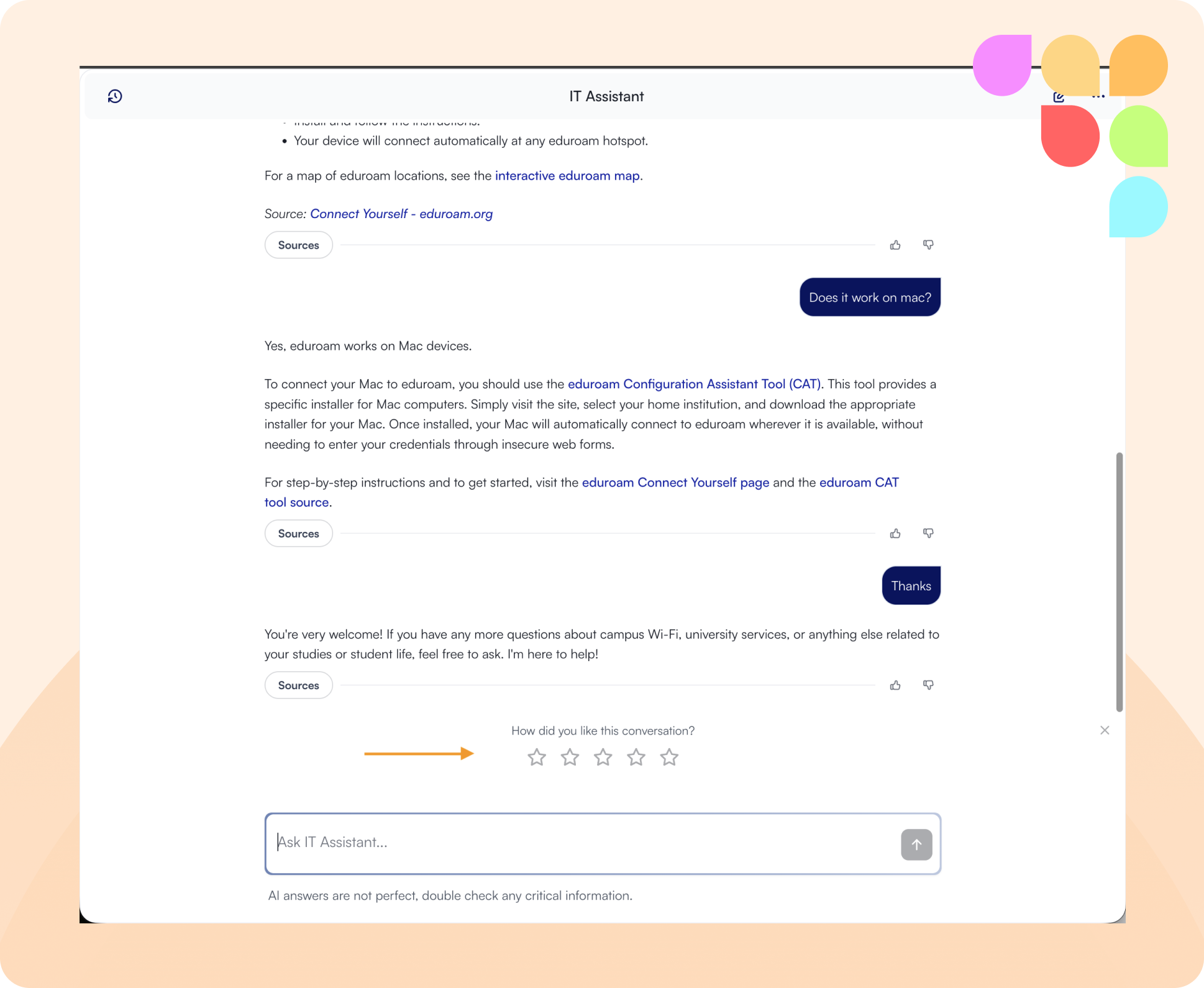 Transparent reasoning — The assistant shows the search steps it took and the logic behind its answer, visible to users directly in the chat.